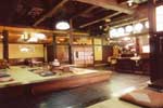 床板と大きな梁民家風のお食事処です。 掘りごたつ式のテーブル席でお召し上がり頂けます。 お料理は山川の「竹皮包焼会席」でお楽しみいただきます。 ※全席禁煙でございます。