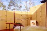 泉質:水道水加温 効能:筋肉痛・関節痛・間接のこわばり・疲労回復 男風呂の一角に石で組まれた露天風呂。寝湯が二つと石の露天が一つ。 青空に向かってわぁーっと背伸びをしてみましょう