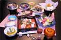 ご夕食は、地産の食材と旬の食材をふんだんに使った和食膳をご堪能いただけます。 宴会時にはお銚子が一本付きます。